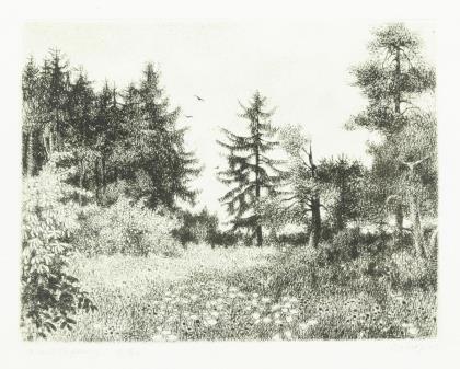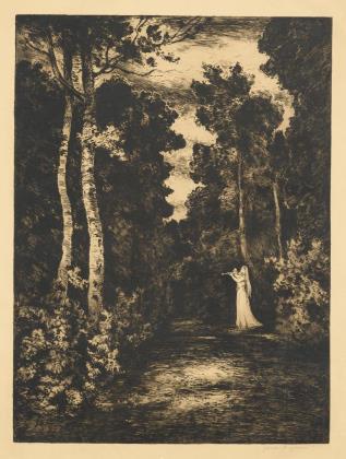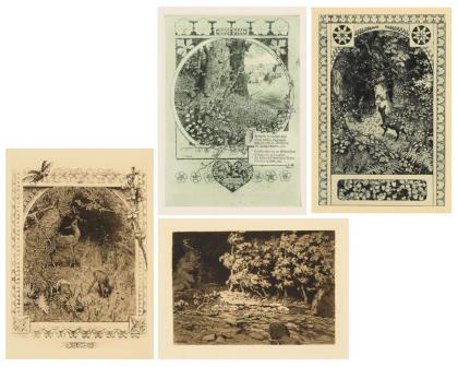 "Reh und Königstochter" (1902) | "Zur Maienzeit" (1895) | "Sturm" (1897) | "Zur Maienzeit" (1895); aus den Jahresmappen des Weimarer Radiervereins