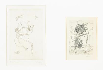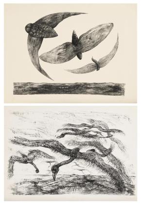 "Meine kranken Vögel", Blatt: 43,2 x 59,9 cm, Exemplar: 13/15 (weißes Exemplar), [19]69, Randbereich minimal griffspurig | "Frostgeschwärzte Insekten", Blatt: 45 x 60 cm, Exemplar: 8/26 (Einzelblatt Insekten), [19]68, Randbereich etwas knick- und griffspurig