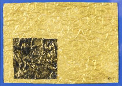 Undeutlich signiert: Schwarzes Quadrat auf goldenem Grund.