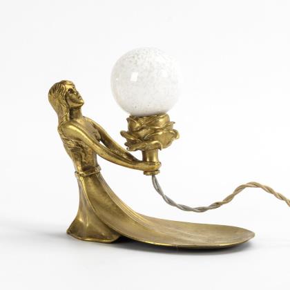 Kleine Jugendstil-Lampe mit Mädchenfigur.