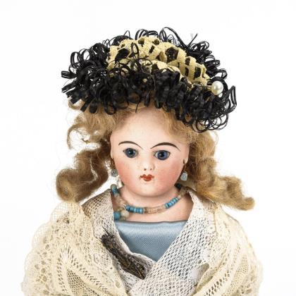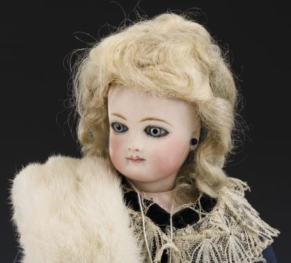 Französische Puppendame mit Pelzcollier.