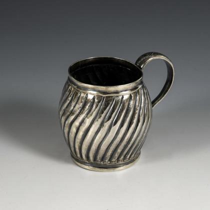 Leicht gebauchter Henkelbecher mit gedrehter Rippenzier