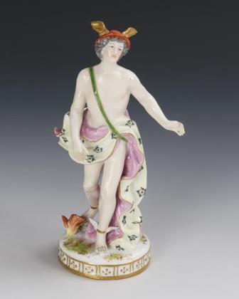 Auf einer Rundplinthe laufender Götterbote mit geflügeltem Helm