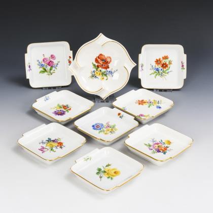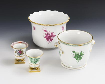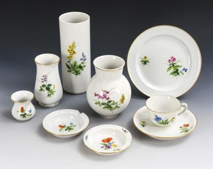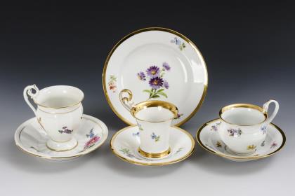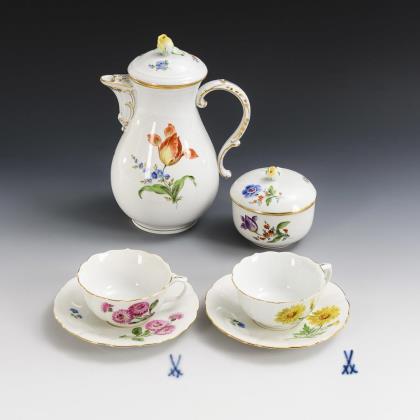 Cachepot, Kännchen und Zuckerdose mit Blumenmalerei