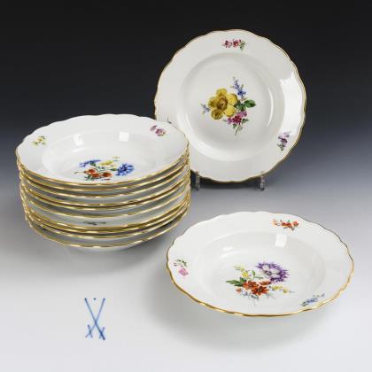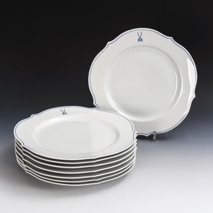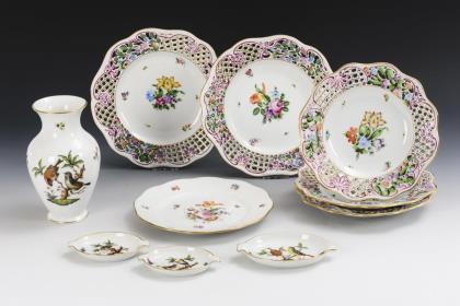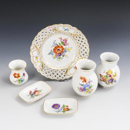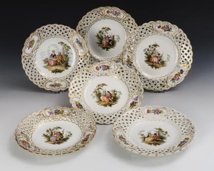 6 Durchbruchteller mit Watteau-Malerei. Aelteste Volkstedter.