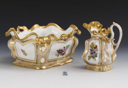 Schale und Milchkanne mit Blumenmalerei. Tielsch.