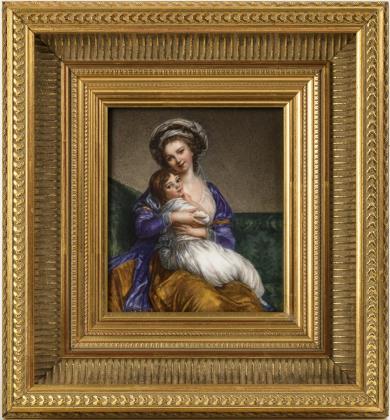 Rechteckige Bildplatte mit der Darstellung der Malerin Elisabeth Vigee-Lebrun (1755-1842), nach dem 1786 geschaffenen Selbstporträt der Malerin