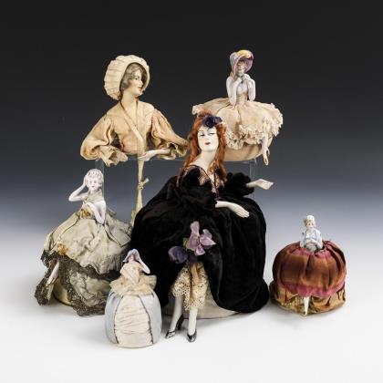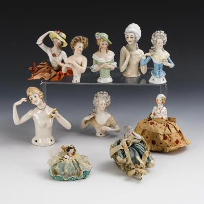 Verschiedene, überwiegend als Rokokodame gestaltete Damenbüsten, davon 3x mit Rock