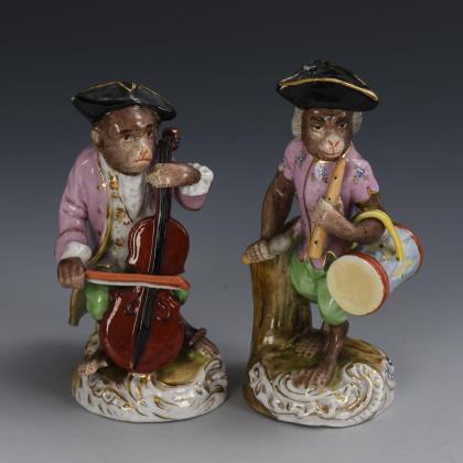 Aus einer Affenkapelle. Affe mit Kontrabass und Affe mit Flöte und Pauke