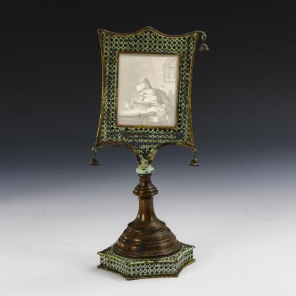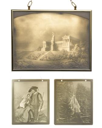 Biedermeier-Rahmen mit Lithophaniebild und Lithophaniebild mit Bleiglasrahmen und Aufsteller. Schierholz.