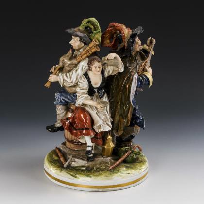 Dreifigurige Gruppe einer jungen Dame am Spinett, einer tanzenden jungen Dame und eines jungen Herren