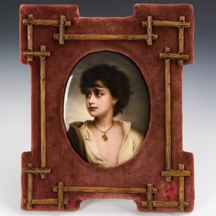Ovale Bildplatte mit der Darstellung eines südländischen Knaben, nach einem Gemälde des Malers Gustav Karl Ludwig Richter (1823-1884)
