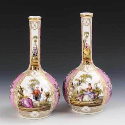 Paar Vasen mit Watteau-Malerei. Helena Wolfsohn.