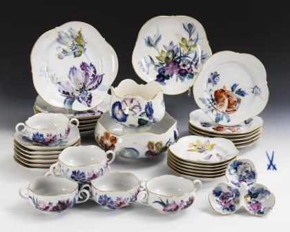 Seltenes Speiseservice "Blau-bunte Blume", 34 Teile | siehe Nachtrag. Meissen.