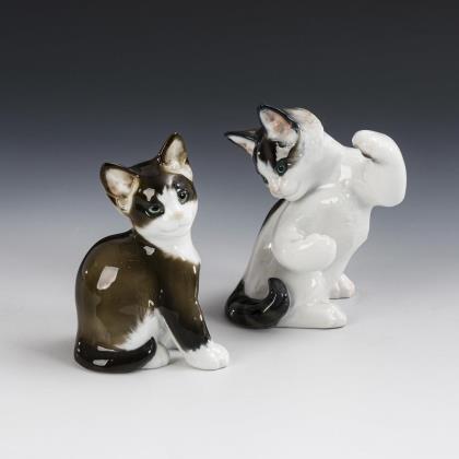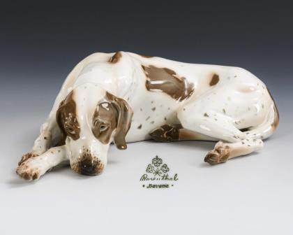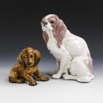 1x King Charles Spaniel, Modell-Nr. K 540, Entwurf 1919 von Dorothea Moldenhauer (1879-1968). / 1x Dackelwelpe, Modell-Nr. 1247, Entwurf 1933 von Theodor Kärner (1884-1966)