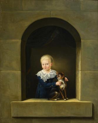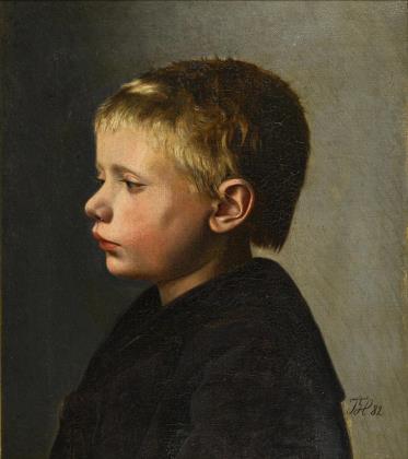 Bildnis eines Jungen mit blondem Haar und in dunkler Kleidung