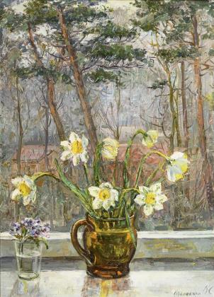 Russischer Maler: Frühlingsblumen.