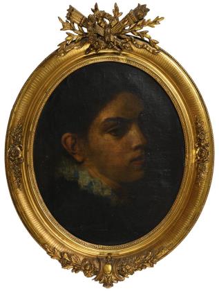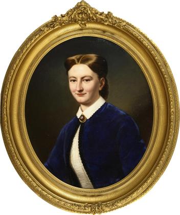 Ovales Frauenbildnis im schönen Goldstuckrahmen.