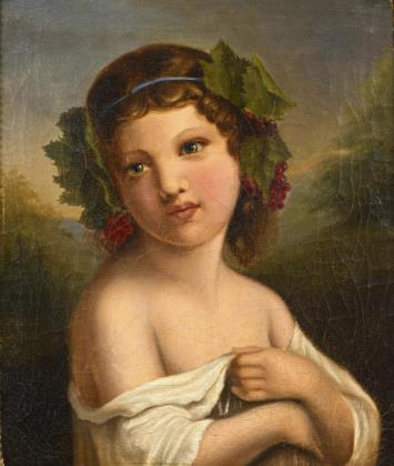 Dreiviertelporträt eines Mädchens mit blondem Haar und in weißem Gewand