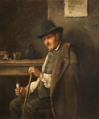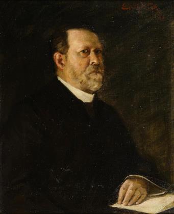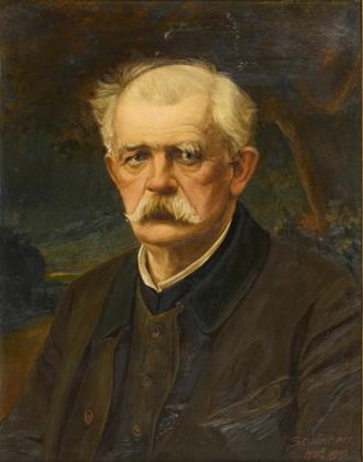 Bildnis eines älteren Mannes im dunklen Gehrock und weißem Hemd vor neutralem Hintergrund