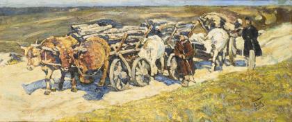MAJLUTIN, Sergei Vasilievich (1859 - 1937). Holzkonvoi in der russischen Steppe.