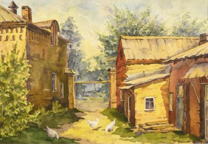 RADIMOVA, Tatyana Pavlona (1916 Kasan - 2000). Bauernhof mit Geflügel.