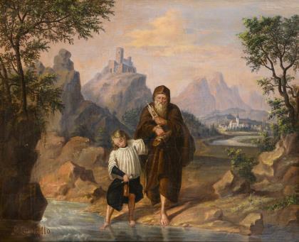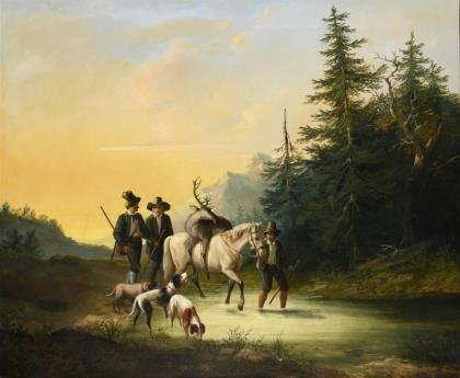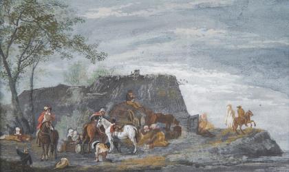 GESSNER, Conrad zugeschrieben (1764 Zürich - 1826 ebd.). An der Furt.