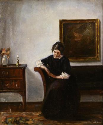 HILSOE, Hans (1871 - 1942). Interieur mit junger Dame am Klavier.