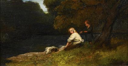 LEBRUN, P.. Wäscherinnen am Fluss.