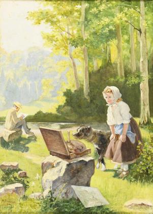 FAIVRE, Abel (1867 Lyon - 1945 Nizza). Junge Frau in Landschaft.