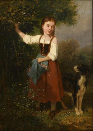 HERTER, Wilhelm Friedrich (1865 New York - 1888 München). Spielendes Kind mit Hund.