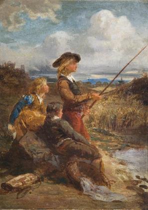 ENGLISCHER GENREMALER 18.-19. JAHRHUNDERT. Knaben mit Angel in weiter Landschaft.