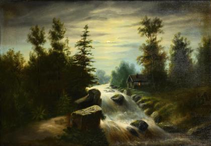 DALLWIG, Heinrich (1811 Kassel - München 1857). Gebirgsbach bei Vollmond.