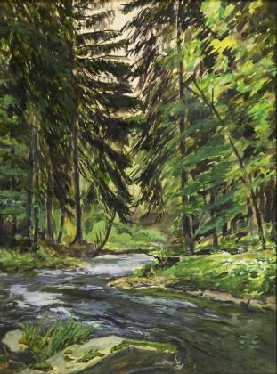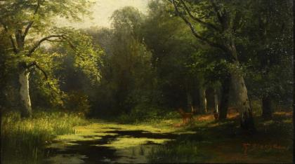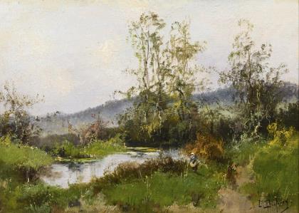 PUHONNY, Victor (1838 Prag - 1919 Baden-Baden). Bachlandschaft.
