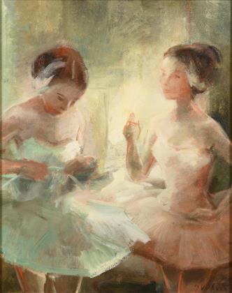 Zwei junge Tänzerinnen beim Ankleiden im hellen Licht