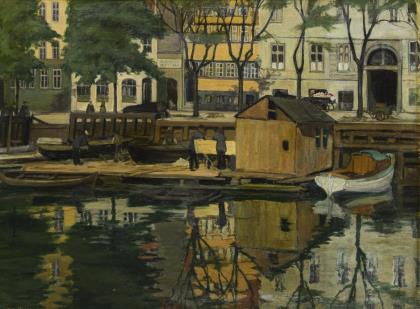 NIELSEN, Otto (1877 Kopenhagen - 1959). Bootsbauer am Kai.