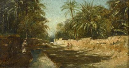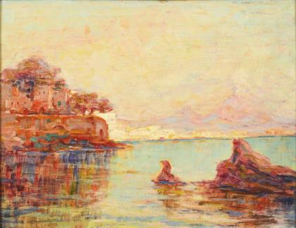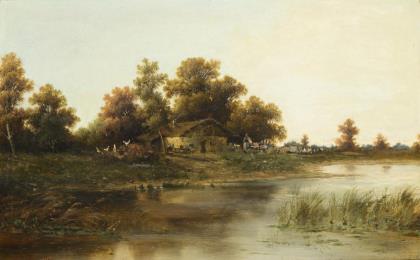 CHÉRET, Jules (1836 Paris - 1932 Nizza). Sonnige Uferlandschaft.