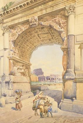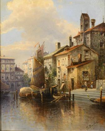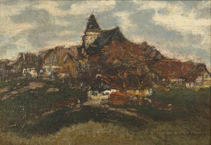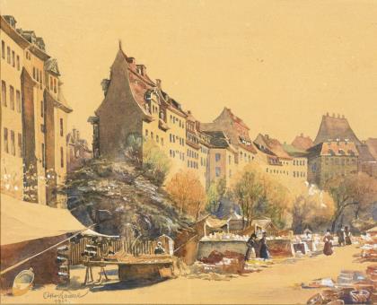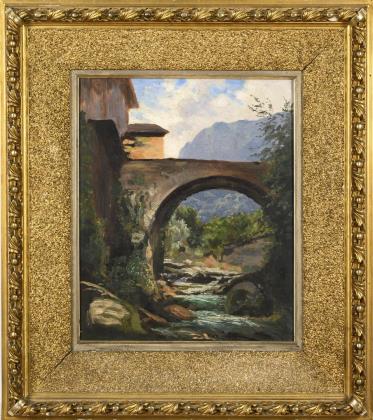 ZELTNER, Philipp (1865 Mainz - 1946 ebd.). Kleine Stadtansicht mit Steinbrücke.