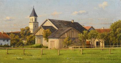 Sonnige Dorflandschaft.