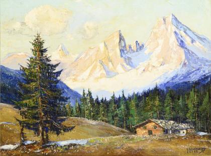 SCHUHKNECHT, Adolf (1889 Reichenbach - 1963 Rotenburg). "Vorfrühling am Watzmann".