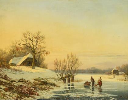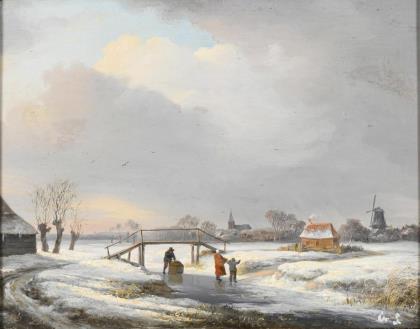 SCHELFHOUT, Andreas (1787 Den Haag - 1870 ebd.). Winterlandschaft mit Staffage.