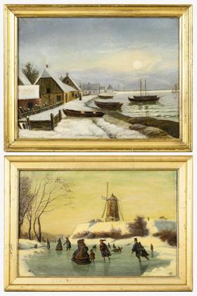 HENRICHSEN, Carsten (1824 Kobenhagen - 1897 ebd.). Zwei Winterbilder.