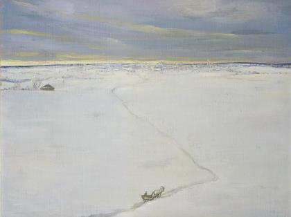LANDSCHAFTSMALER 20. JAHRHUNDERT. Pferdeschlitten in weiter Winterlandschaft.