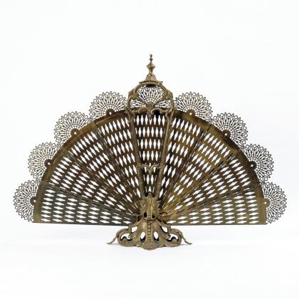 Geschweifte Wandhalterung mit Glockenbaldachin und -becken, 4 korinthischen Säulen und der teilplastischen Darstellung einer brennenden Heiligen