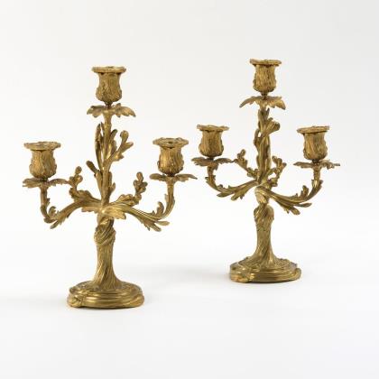 Paar 3-flammige Girandolen im Rokoko-Stil.