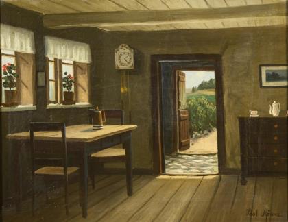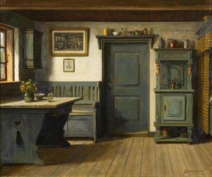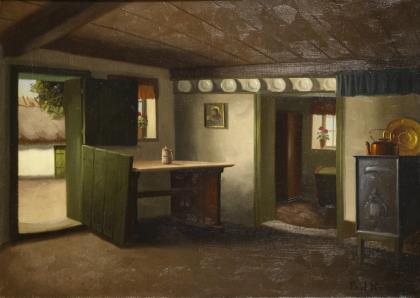 RÖNNE, Poul (1884 Frederiksborg - 1964 Bornholm). Interieur einer Bauernstube.