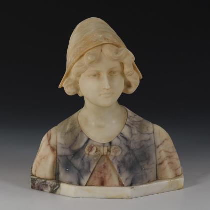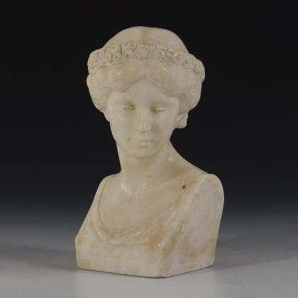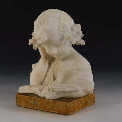 VICARI, Christophoro (1846 Caslano - 1913 Lugano). https://auktionen.auktionshauswendl.de/lot/lot-details/50769Alabaster-Büste: Lesendes Mädchen.