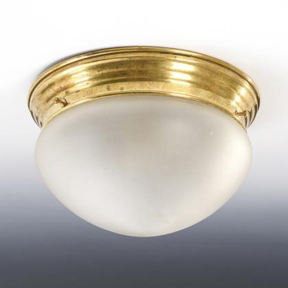 Plafonnier mit profiliertem Messingrand und flachem, pilzförmigem Glasschirm, Schraubfassung