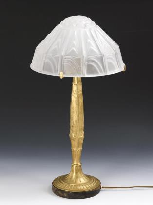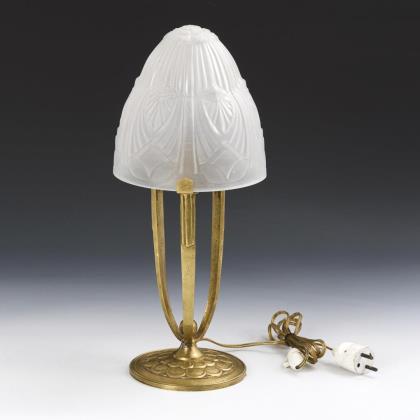 Jugendstil-Tischlampe mit Glasschirm. Wohl Noverdy.