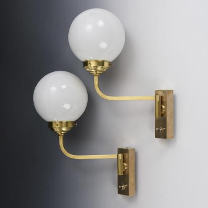 2 Lampen mit Wandhalterung, schwenkbarem Arm und kugelförmigem Lampenschirm